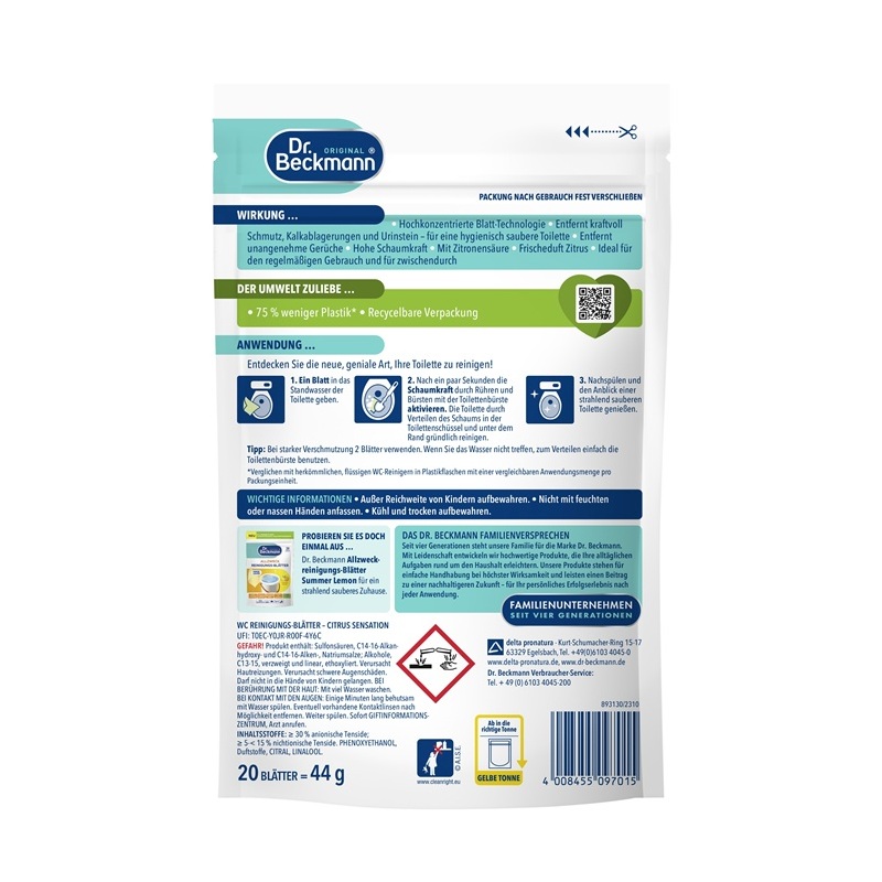 DR. BECKMANN WC REINIGUNGS - BLAETTER CITRUS - 20 BLAETTER
