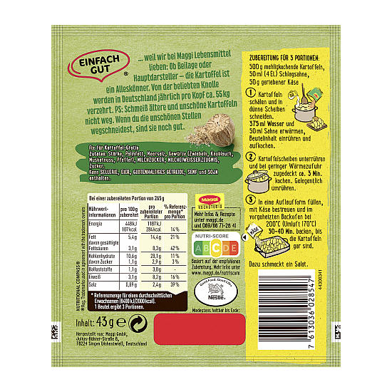 Product information "MAGGI FIX FUER KARTOFFEL GRATIN 43G"